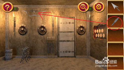 然后在鞭把的处所点击三个位置即可把门开了。
