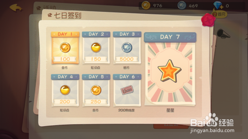 签到当作功,领取签到奖励,签到7天为一个周期,天天的奖励都纷歧样,越往后奖励越好。