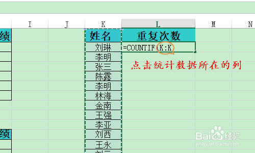 然后在后面的括号内点击这些名字地点的列,好比该表格就是点击K列即可,我们可以看到此时K列被全数选中;