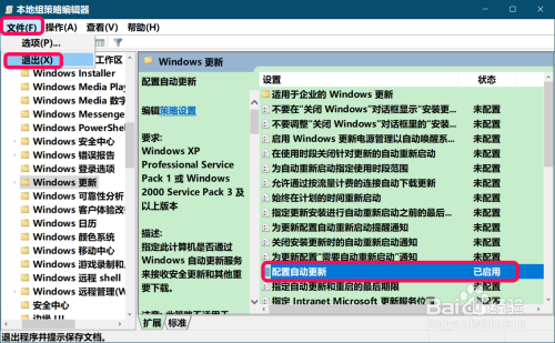点击窗口左上角的【文件】,鄙人拉菜单中点击【退出】,退出组策略编纂器窗口。
