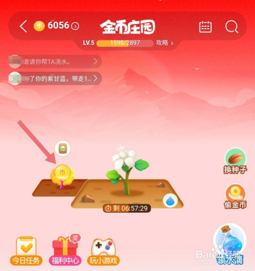 进去金币庄园今后我们可以看到如图的样子,点击左边的这块处所