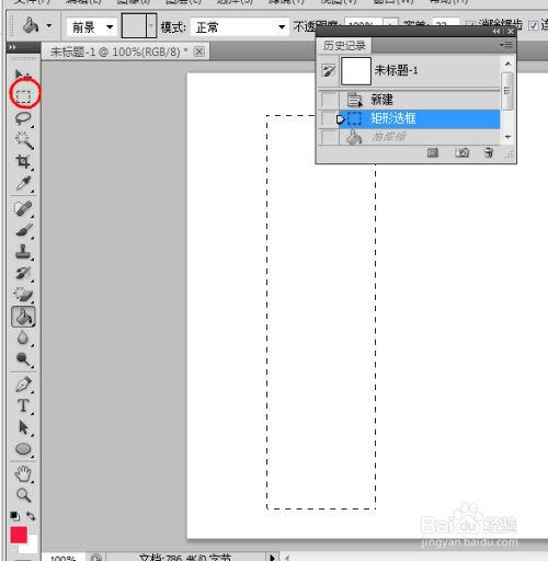 然后点击左边菜单的选框东西,在白色文件上选出一个长方形,也就是春联的大小