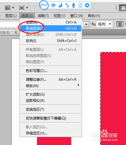这时辰右边的红色春联外框还有蚂蚁线,我们点击上面菜单的选择----打消选择,蚂蚁线就消逝了,