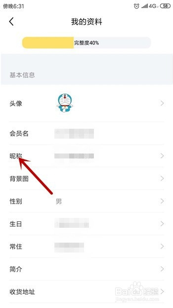 在小我资猜中能看到【昵称】这一栏,想要点窜就点击【昵称】选项。