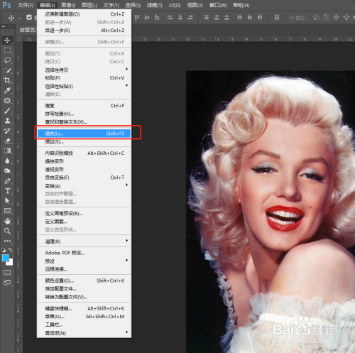 设置前景色的颜色,然后睁开编纂菜单栏,执行编纂菜单中的填充号令。