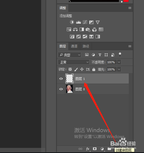 在图层面板中找到新家图层按钮,点击新建图层按钮来新建一个图层出来。