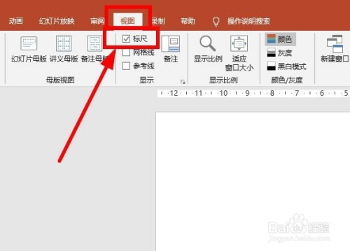 在Powerpoint 中建造幻灯片的时辰,经常要用到标尺,如何设置标尺的显示呢?