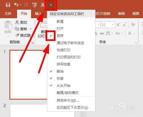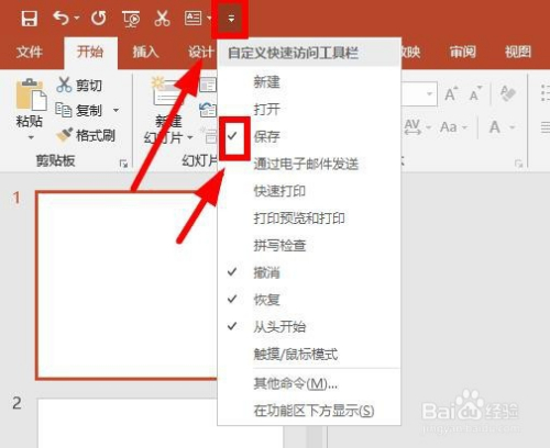 先来看看如何在快速拜候东西栏添加按钮。点击快速拜候东西栏最右侧的小三角,弹出下拉菜单,常用的号令就在这里面,可以看到有些号令前面已经打√,打√ 的就是已经显示在快速拜候东西栏的。你想让哪个号令到快速拜候东西栏,在其前面打√就OK了。