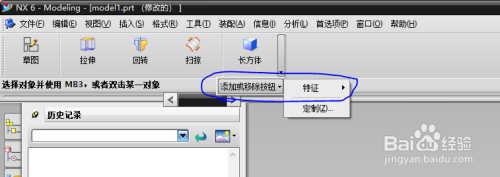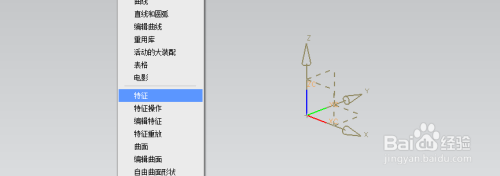 b、在弹出的菜单中选择特征。