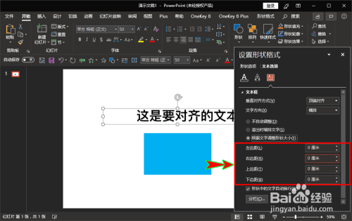 - 文本框与图片或外形不克不及完全对齐是因为文本框设置了边距所致;