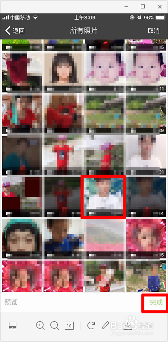 从相册选择要加水印的视频,点击“完当作”。