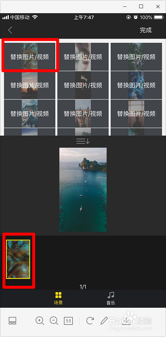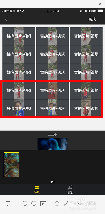 继续点击“替代图片/视频”,替代完9个后,按住图片往下拉,会呈现更多,继续替代,直到15个图片全数替代完当作,点击“完当作”。