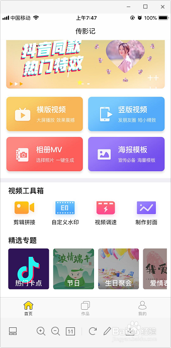 手机安装并打开传影记,点击底部的“热点卡点”。