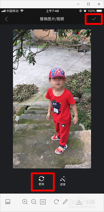 若是不对劲可以“改换”,也可以添加“滤镜”,这里直接点击“对号”。