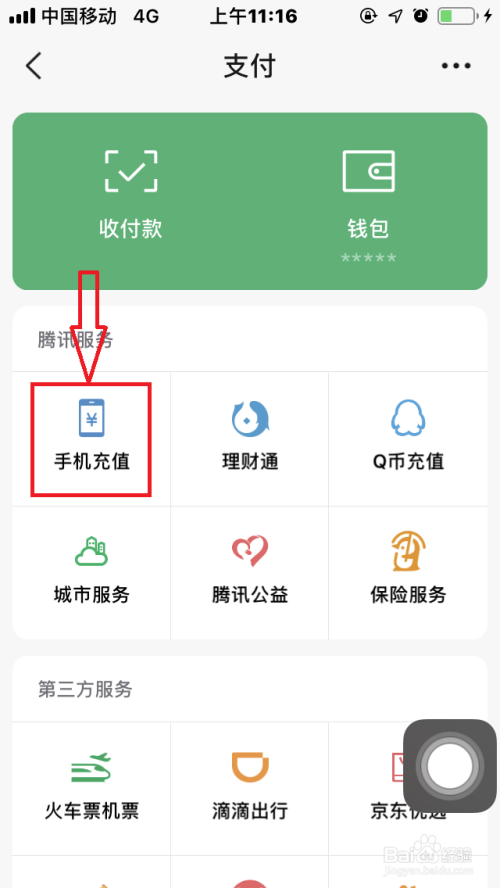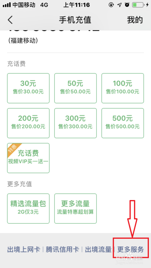 点击“手机充值”,进入“充值”页面。