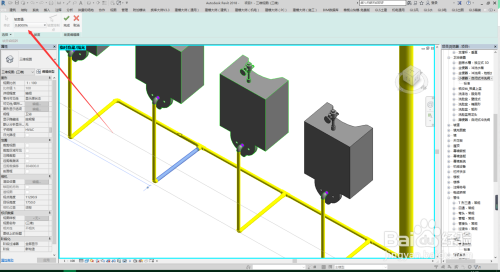 将卫浴设备毗连到管道上:一小便器为例,选择小便器,在号令栏找到“毗连到”选择卫生设备,这时辰它会主动毗连到卫浴设备上,确定。