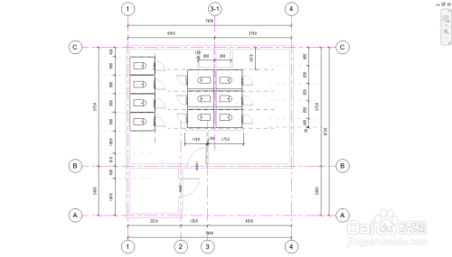 并按照“平面图1:50”绘制建筑轮廓,建筑层高为4m,包罗墙、门、楼板。(为了便于区分参考线,建议将轴网颜色改为紫色),卫浴隔绝距离没有出格要求,为节约时候采用墙东西绘制即可。