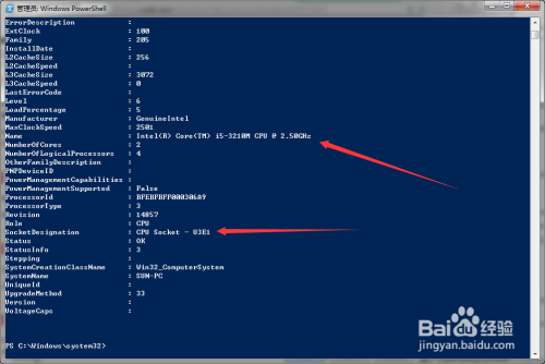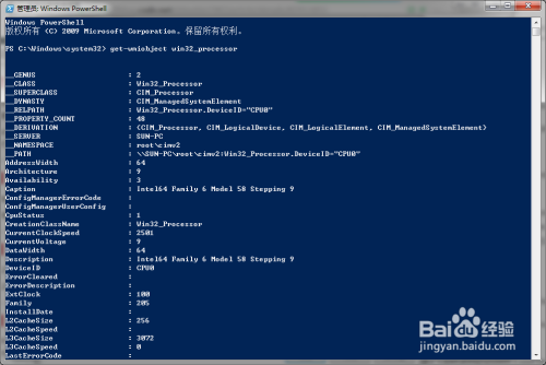 指明要查询的信息 win32_processor ;