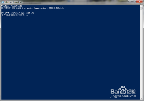 在Powershell程序窗口中,输入“gpresult”;