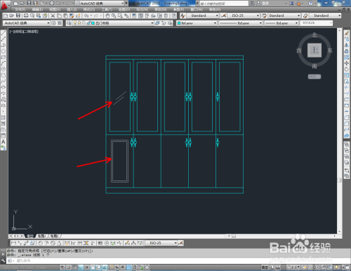 最后,将建造好的拉手图块导入文件并调整好拉手的位置。完当作细节部门的建造后,我们的五门书厨平面图便全数建造完当作。