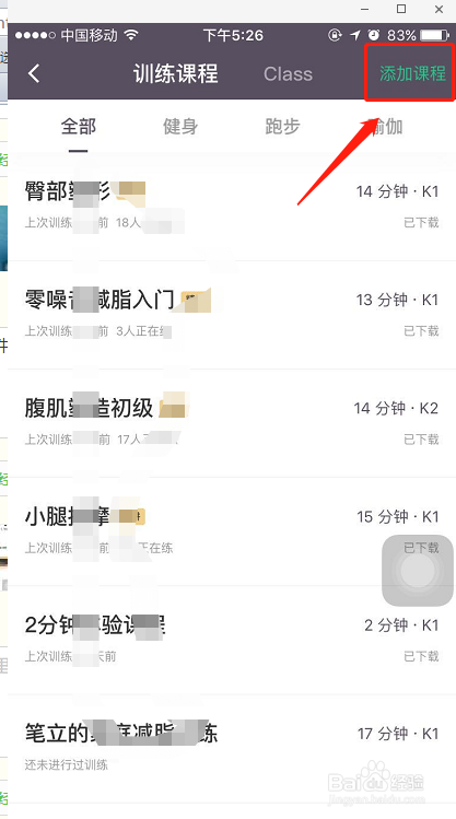 点击下方的添加课程,接着会提醒你起头第一次练习,若是你不是很便利可以直接退
