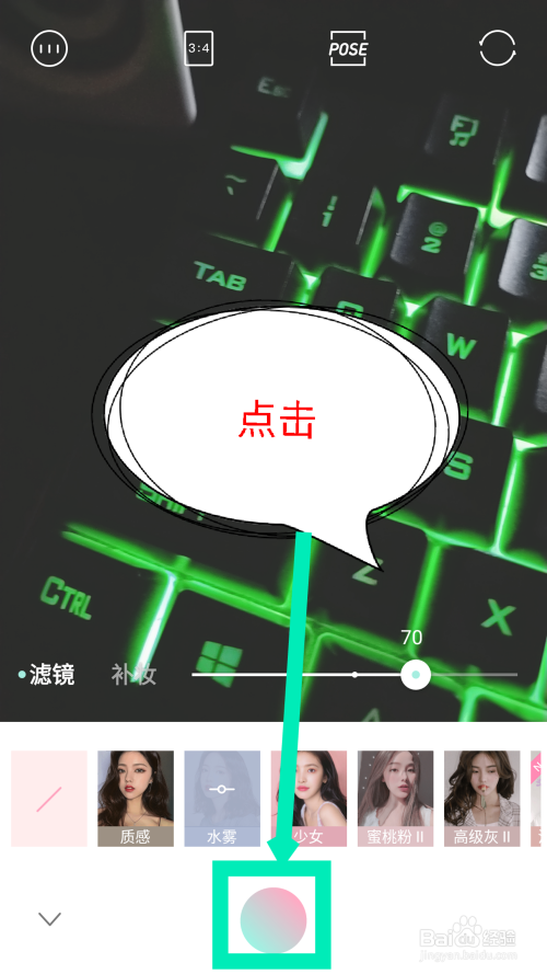 水雾滤镜设置完当作后,也可以选择默认的,点击底部的按钮就可以拍摄了。如图