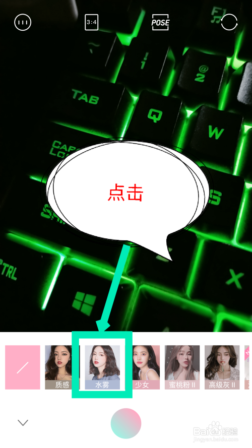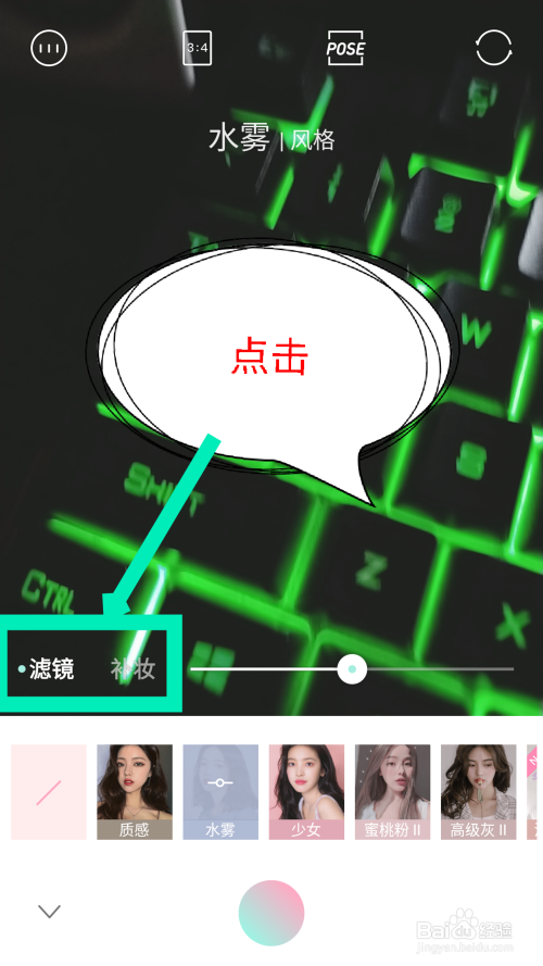 在气概里面,能看到水雾滤镜选项,点击利用水雾滤镜。如图所示