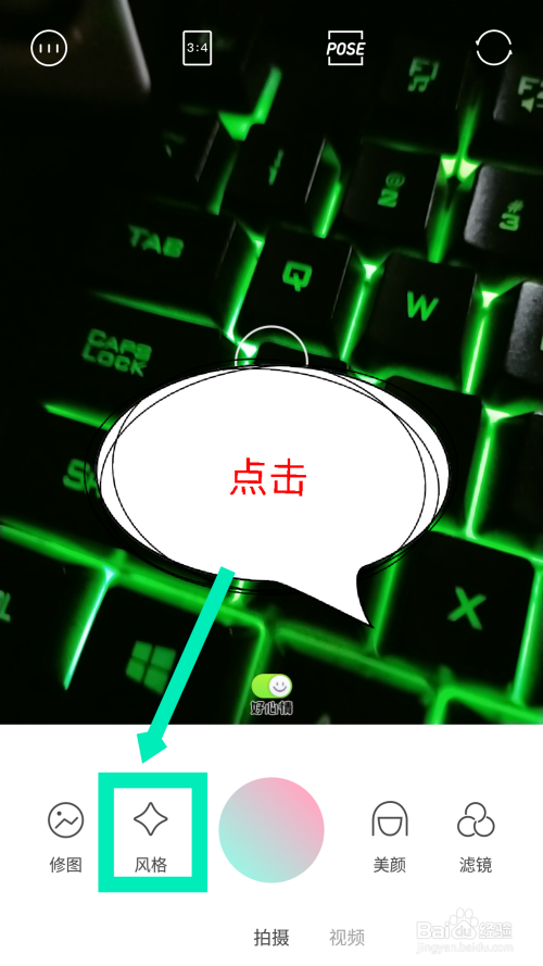 打开相机后,点击底部的气概。如图所示