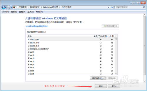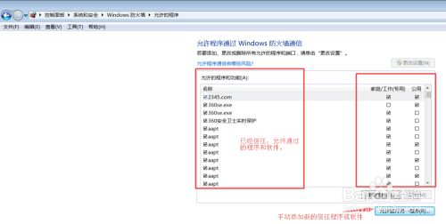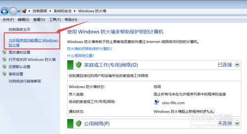 1、左键单击“许可程序或功能经由过程windows防火墙”进入“许可的程序”设置界面。