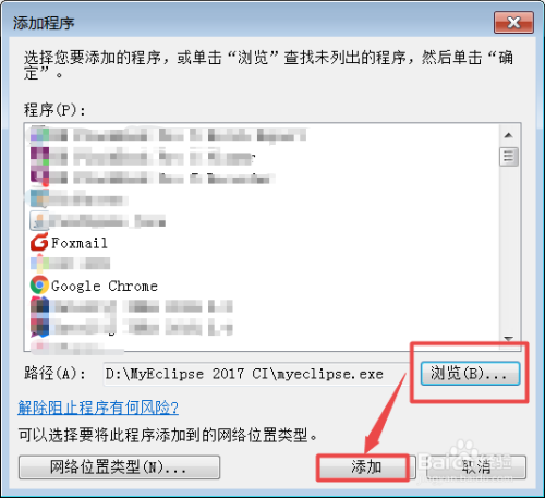 2、点击“许可运行另一程序”,手动添加如下图所示