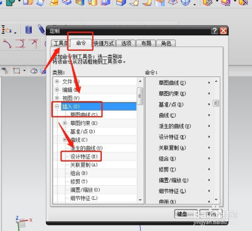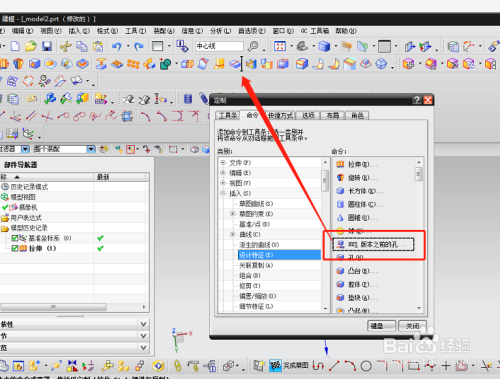 找到左侧的低版本的孔,按住鼠标左键,把号令拖到东西条上去