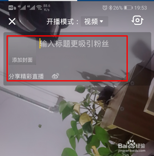 点击后,来到开启直播的界面,在上方可以添加直播的封面和题目。