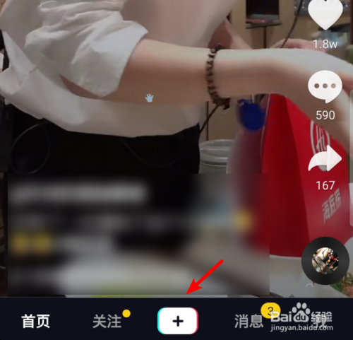 解锁手机进入系统后,在手机中点击抖音的应用进入,点击中心的加号。