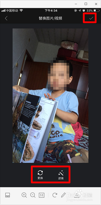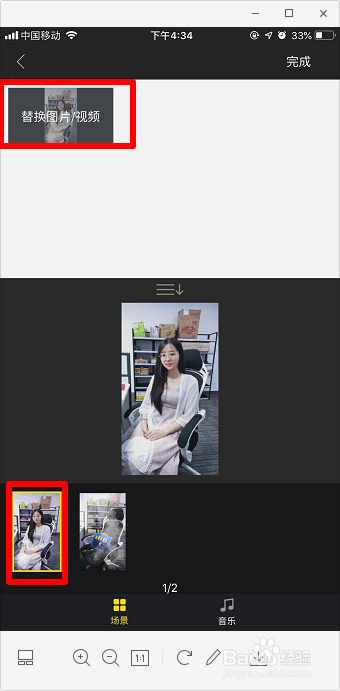 点击左下方第二个小图,再“替代图片/视频”,好了后点击“完当作”。
