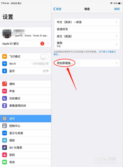 若是要添加系统自带的新键盘,点击“添加新键盘”;