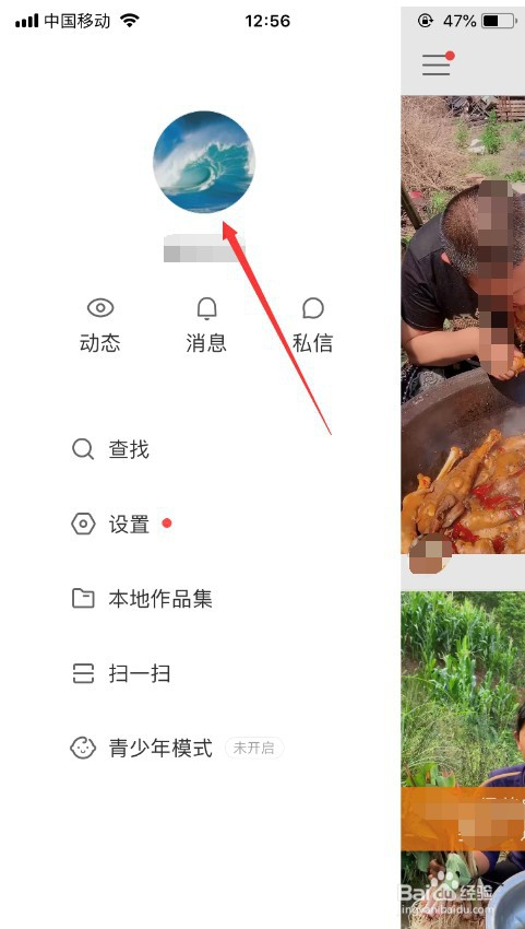 然后,就会从侧面弹出一个页面,点击弹出页面中的小我头像,进入小我中间,如图所示。