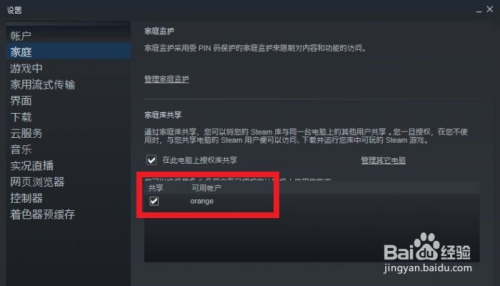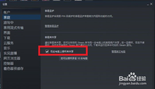 进入抵家庭设置后,我们把【在此电脑上授权库共享】前面的勾打上。(经由过程点击前面的小方块打勾)
