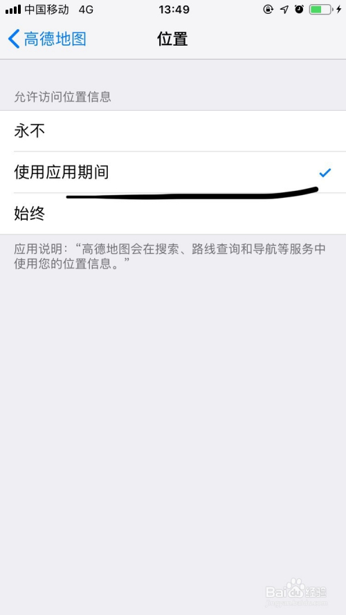若是我们需要无时无刻都让高德知道位置,我们点击始终。