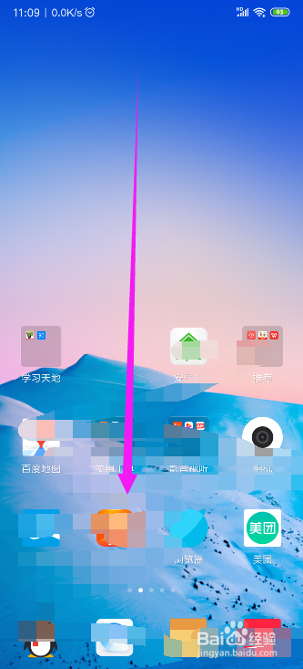 打开小米手机,从上往下滑脱手机屏幕,如图所示