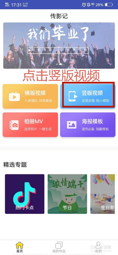 首先我们打开传影记,找到 竖版视频 分类。每个分类的内容都分歧,我们按照本身的需要选择即可。