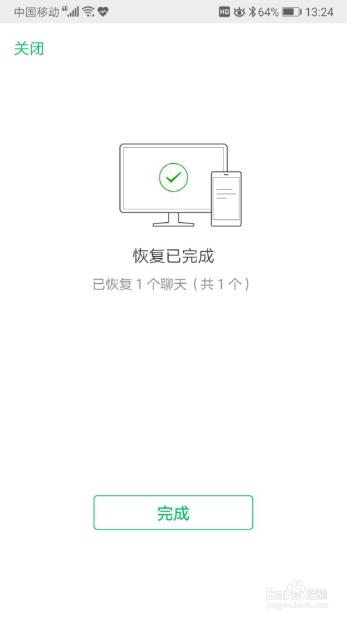 聊天记实恢复完当作后,显示“恢复已完当作”。