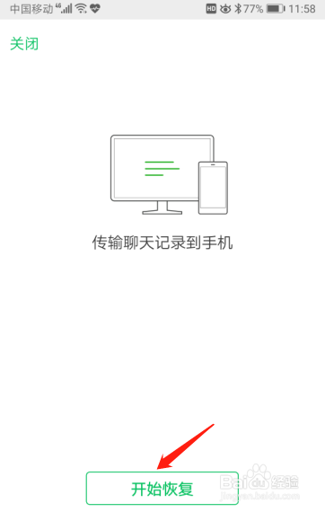 聊天记实恢复同样需要在手机长进行确认,在手机上点击【起头恢复】按钮,起头恢复聊天记实。