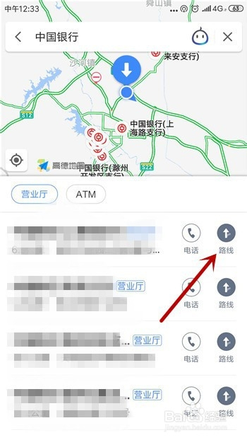 若是想查看具体的路线,可以在银行网点后方点击【路线】选项,如图所示。
