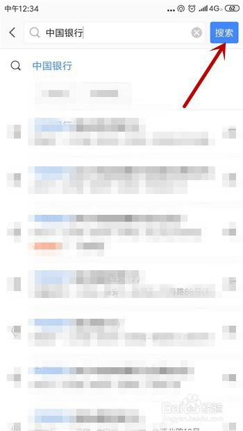 搜刮我们需要找的银行,好比说中国银行,输入后点击【搜刮】按钮。