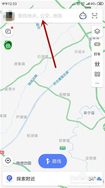 我们可以在手机中经由过程高德地图来查看,打开高德地图后点击上方【搜索框】。