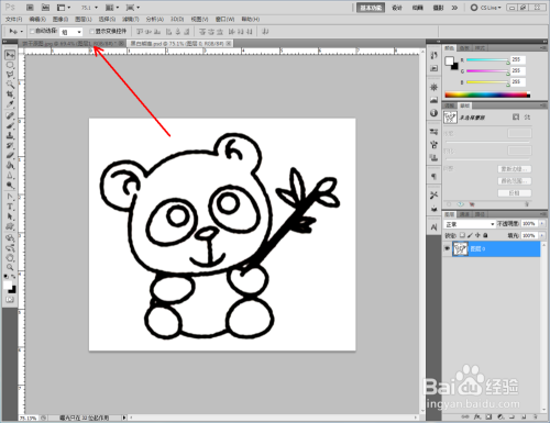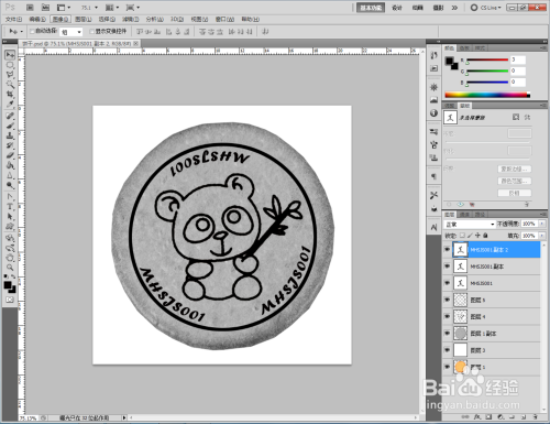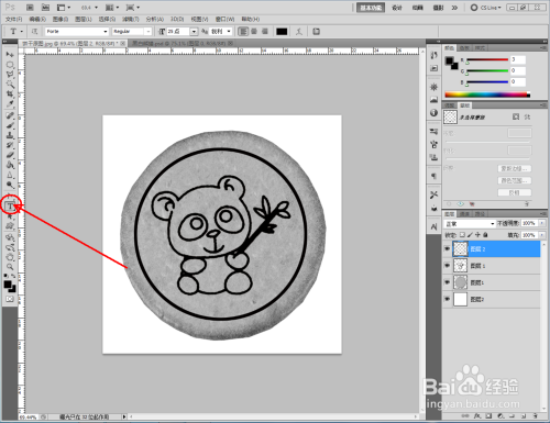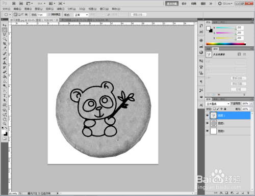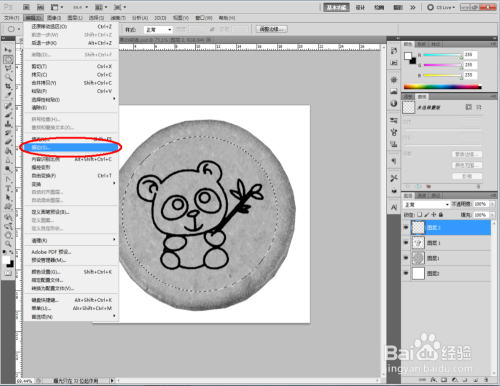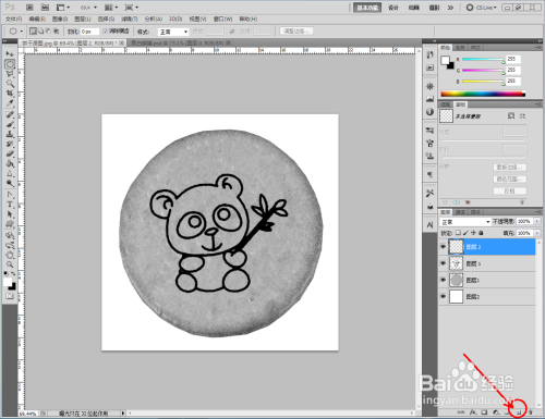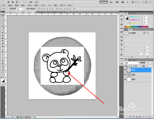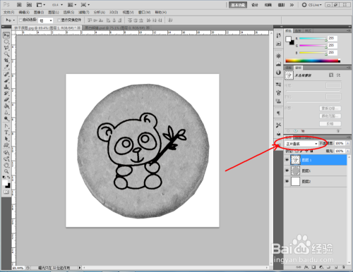 点击【图像】-【调整】-【去色】,将彩色图转换为口角图。将找好的熊猫口角图拉进作图区域,并将模式更改为【正片叠底】(如图所示);