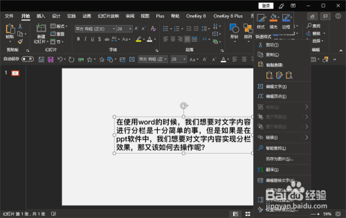 - 在ppt中也是可以对文字内容进行分栏处置的;