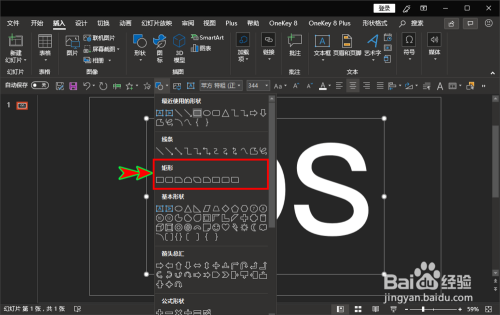 接着,我们在软件顶部菜单栏选择“插入”菜单,在子菜单中找到并点击“外形”选项选择插入一个根基外形。