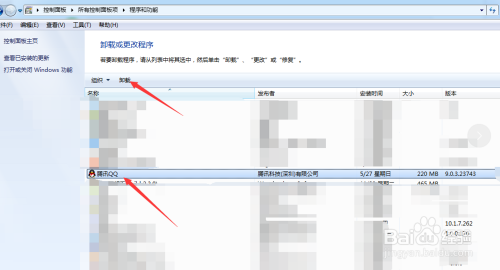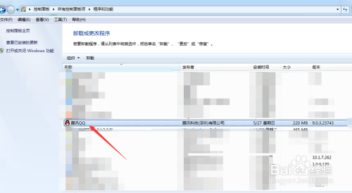然后在程序界面,选择想要卸载的软件,先点中它,如图