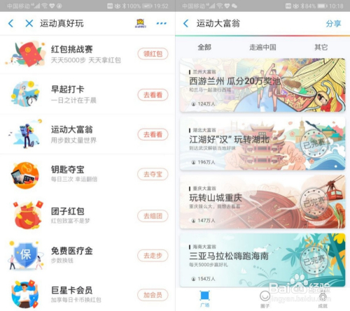 支付宝“阿里体育”里面的活动还有良多,可以选择本身喜好的活动加入一下。